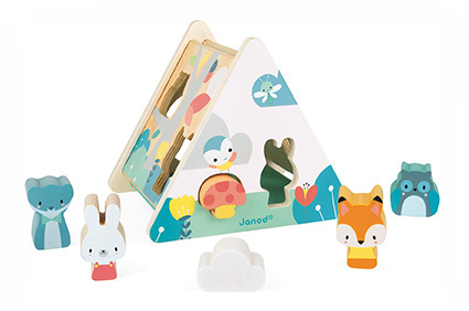 Nádherný pastelový dřevěný domek na vkládání pro děti od 18 měsíců. Předměty na vkládání jsou rozkošné čtyři zvířátka, hříbek a obláček, s nádhernými pastelovými barvami, které se dětičkám zalíbí. Domek má na na třech stranách po dva otvory pro vložení tvarů. Na čtvrté straně je kulatý velký...