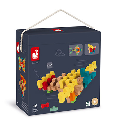 Janod Dřevěná stavebnice s předlohami 100 ks dílků