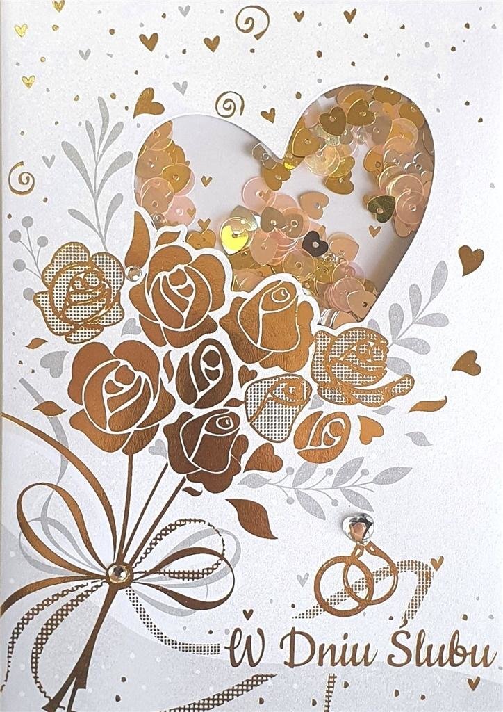 Karnet okolicznościowy z kopertą i życzeniami w środku. prečítať celé