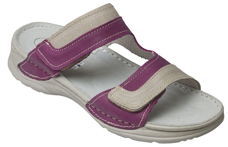 Zdravotní obuv - dámské pantofle,barva: fialová, béžovépodešev: bílá stélka: anatomicky tvarovaná, kožená,materiál: kůže,přezky pro upravení velikosti,protiskluzová podešev,certifikovaná obuv. prečítať celé