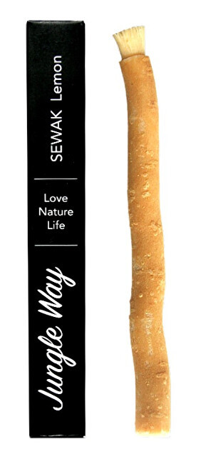 Přírodní zubní kartáček sewak s citronovou příchutí. Již několik tisíciletí jej lidstvo užívá k dentální hygieně pro jeho dezinfekční, antibakteriální, čistící a vysoce bělící účinky. Jak je laboratorně prokázáno, sewak obsahuje fluoridy, vápník, vitamin C + dalších 16 aktivních látek, díky kterým získáte lésklé, bílé zuby, zdravé dásně, ochráníte zubní sklovinu a zabráníte vzniku kazů či usazování zubního kamene.