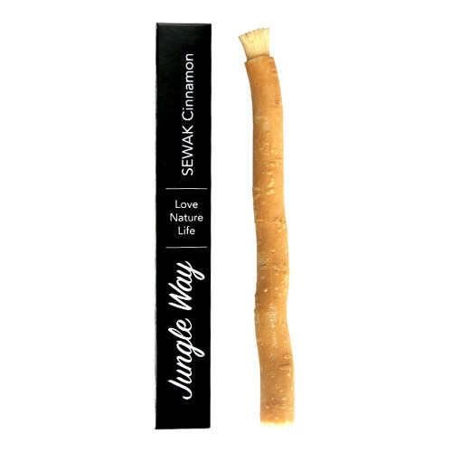 Přírodní zubní kartáček sewak se skořicovou příchutí. Již několik tisíciletí jej lidstvo užívá k dentální hygieně pro jeho dezinfekční, antibakteriální, čistící a vysoce bělící účinky. Jak je laboratorně prokázáno, sewak obsahuje fluoridy, vápník, vitamin C + dalších 16 aktivních látek, díky kterým získáte lésklé, bílé zuby, zdravé dásně, ochráníte zubní sklovinu a zabráníte vzniku kazů či usazování zubního kamene.