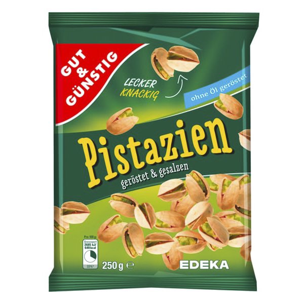 GG Německé pistácie pražené a solené - 250Gr velmi chutné německé pistácie, které jsou velmi pečlivě vybírané pro dokonalou chuť! Balení 250GrSložení: 98,5% pistácie, sůl. Produkt může obsahovat stopy arašídů a suchých plodů ovoce.Výživové hodnoty ve 100g/ % referenční hodnota příjmu u průměrné...