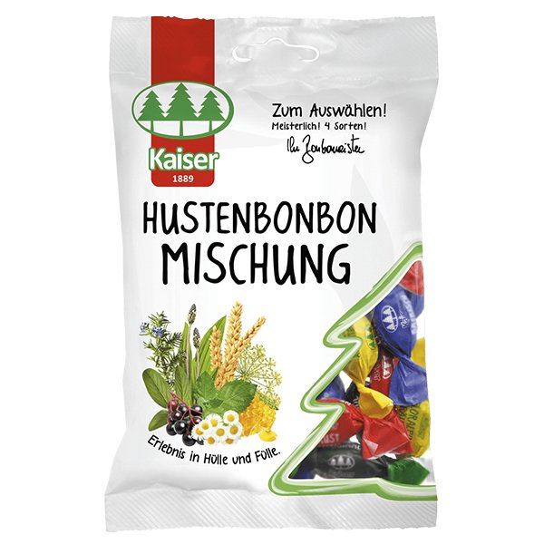 Kaiser - bylinné bonbony proti kašli a nachlazení MIX - 100gSložení: BIMENTOL ORIGINAL, cukr, glukózový sirup , hnědý cukr, hnědy cukrový sirup, barvivo: karamel z cukrové třtiny, přírodní mentol; eukalyptus a mátový olej a císařský prsní karamel : cukr,glukózový sirup , JEČMENOVÝ sladový...