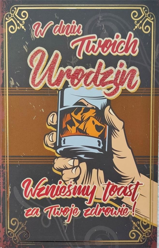 Karnet 2k. Klasyczny karnet urodziny męskie. Uszlachetniony lakierem brokatowanym oraz wysokiej jakości hotstampingiem ( złocenie ). Karnet zawiera kopertę i życzenia. prečítať celé