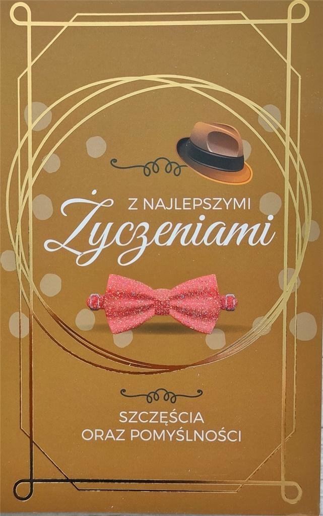 Klasyczny karnet z życzeniami, wersja męska. Uszlachetniony lakierem brokatowym oraz wysokiej jakości hotstampingiem (złocenie). Karnet z kopertą, bez życzeń. prečítať celé