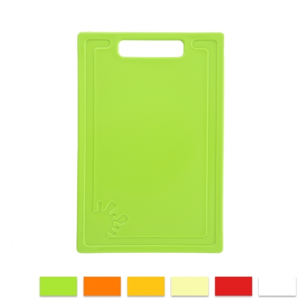 Krájecí prkénko s drážkou, která zabrání stékání šťávy z krájených potravin. Protiskluzové podložky udrží prkénko pevně na místě. Materiál: plast. Assort barev. Lze mýt v myčce na nádobí. Rozměry: 24,5x16x0,5 cm. prečítať celé