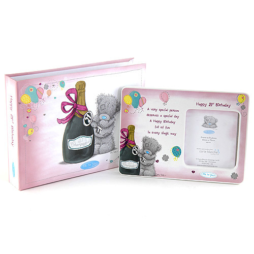 Fotoalbum s atraktivním motivem medvídka Me to You na deskách umožní vytvořit vlastní sbírku fotografií. Album je vyrobeno z kvalitních materiálů, má 36 kapes, pojme fotografie o velikosti 15x10cm a jednotlivé obaly umožňují jednoduché a bezpečné uložení fotografií a jejich popisků. Svoji nejmilejší fotografii uložte do atraktivního fotorámečku o rozměru 65x75mm se stejným motivem, který dodá sadě na jedinečnosti. Krásný dárek k jednadvacátým narozeninám.
