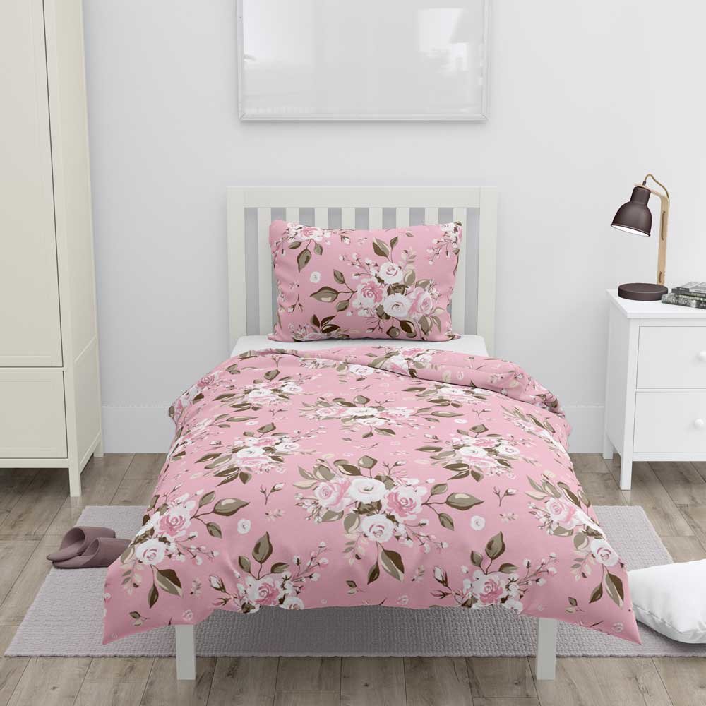 Bavlněné povlečení na jednolůžko, růžové, růže