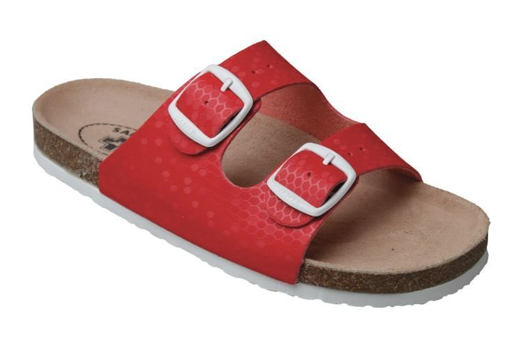 Zdravotní obuv - dětské pantofleDětská obuv s korkovou podešvíBarva: červenáPodešev: světláStélka: anatomicky tvarovanáMateriál stélky - useňNastavitelné svrchní pásky - přezkyZdravotní certifikovaná obuv prečítať celé