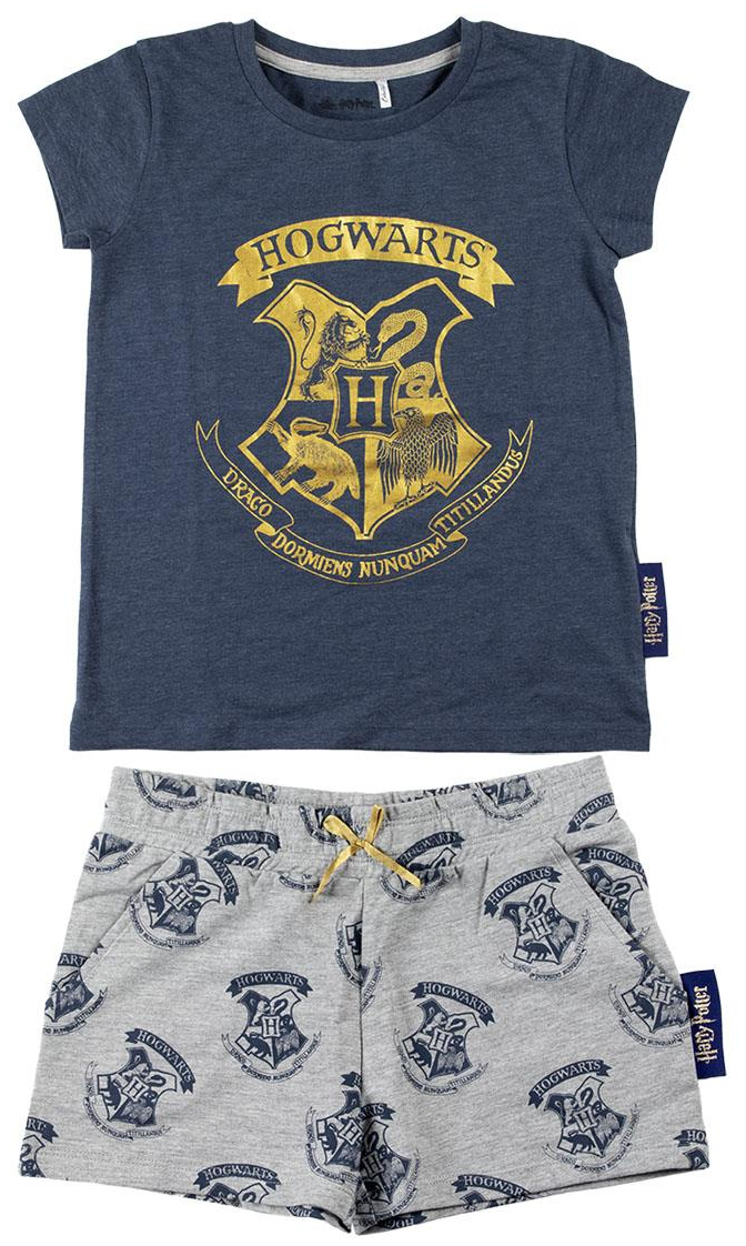 Dětské modro-šedé pyžamo s kraťasy se znakem Hogwarts.