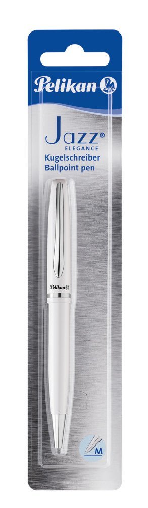 Jazz Elegance, kovové, matně lakované, bílé tělo s kovovým klipem, náplň Pelikan 337 M modrá, na blistru prečítať celé