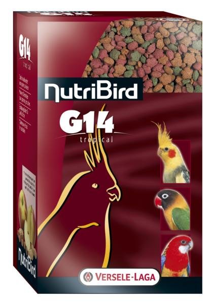 NutriBird G14 - Tropical 1kgNutriBird G14 Tropical - extrudy pro středně velké papoušky s tropickým ovocem na denní krmení.Složení: Obiloviny, ořechy (10 % loupaných buráků), vedlejší výrobky rostlinného původu, semena, vedlejší výrobky ze zpracování čerstvého ovoce a zeleniny, oleje a tuky, jíl,...