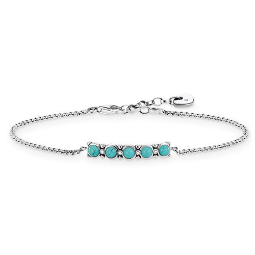 Luxusní stříbrný náramek značky Thomas Sabo. Náramek se zapíná pomocí karabinky s možností nastavení délky.Materiál: 925 Sterling silver, blackened, simulated turquoise, white diamond.Délka náramku: 16-19 cm.Motiv: D_A0015-357-17-L19v. prečítať celé