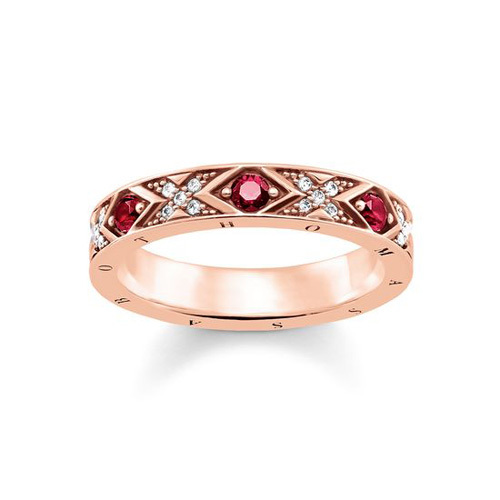 Luxusní dámský prsten značky Thomas Sabo můžete darovat z lásky, z přátelství nebo si jej koupit sobě pro radost. Dokonalý módní doplněk, který můžete střídat nebo nosit každý den.Materiál: 925 Sterling silver, 18k rose gold plating, synthetic corundum dark red, zirconia white.Velikost: 54.Motiv:...