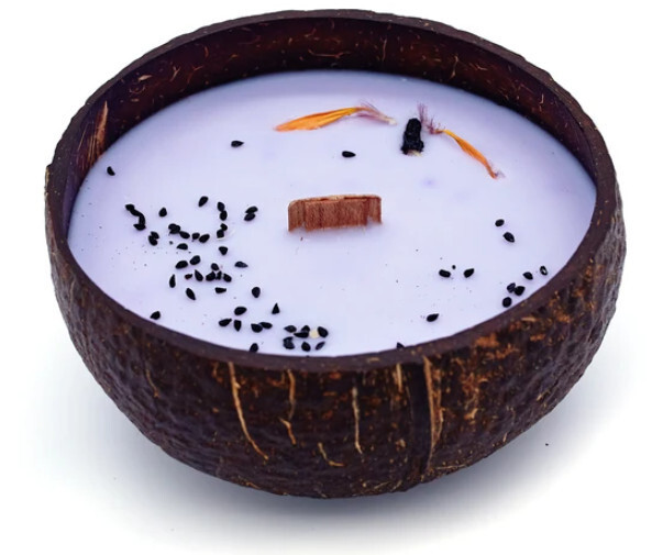Svíčka z kokosu - vůně Borůvka a vanilka - Sójové svíčky v kokosové skořápce jsou krásnou ozdobou a dekorací. Svíčky neobsahují parafín, který je vedlejším produktem ropného průmyslu.Spalováním parafínu se do vzduchu uvolňují nebezpečné toxiny, které potom vdechujeme. Svíčka obsahuje bavlněný...