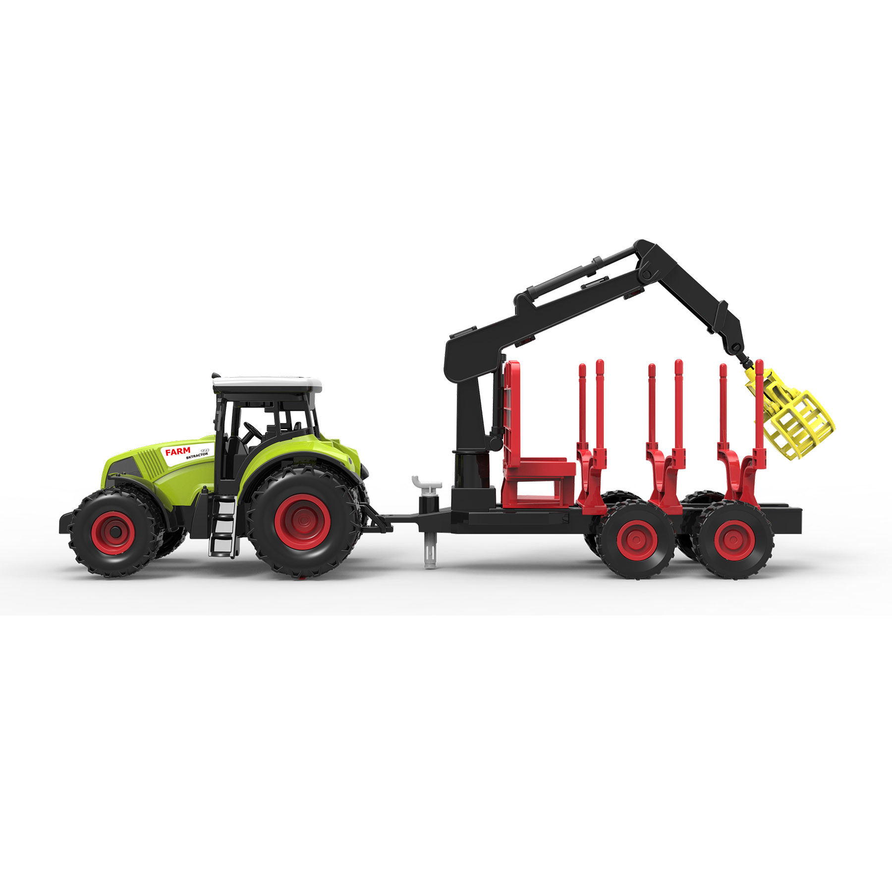 Moderní plastový traktor s vlečkou na dřevo. Nepostradatelný pomocník pro každého malého farmáře! Vlečku můžeš odpojit a traktor využít k dalším pracím. Traktor jezdí na setrvačník a jeho délka včetně přívěsu je 37 cm. Zmáčknutím tlačítek traktor vydává reálné zvuky. Traktor vyžaduje 3 ks baterií typu AG13/LR44, které jsou součástí balení.