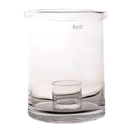 Skleněný svícen DutZ, Hurricane with cup, výška 30 cm, průměr 23 cm, barva čirá