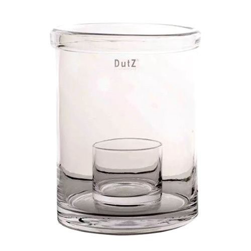 Skleněný svícen DutZ, Hurricane with cup, výška 24 cm, průměr 18 cm, barva čirá
