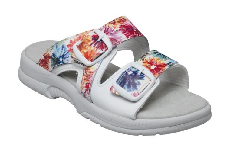 Zdravotní obuv - dámská pantofelBarva: BíláAnatomicky tvarovaná, měkčená stélkaMateriál stélky: useňNastavitelné svrchní pásky: přezky prečítať celé