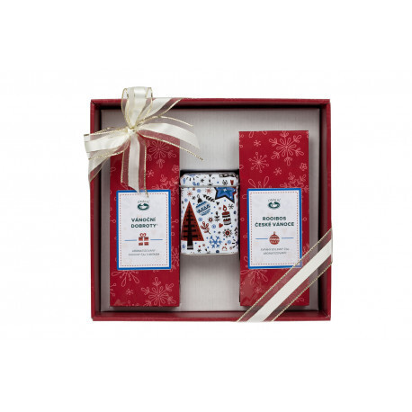 Vánoční dárkové balení čajů Vánoční dobroty, Rooibos České Vánoce a plechová dóza s vánočním motivem v dárkovém balení.Země původu: Vánoční dobroty (Česká republika), Rooibos České Vánoce (Jihoafrická republika).Návod pro přípravu najdete uvnitř balení. prečítať celé