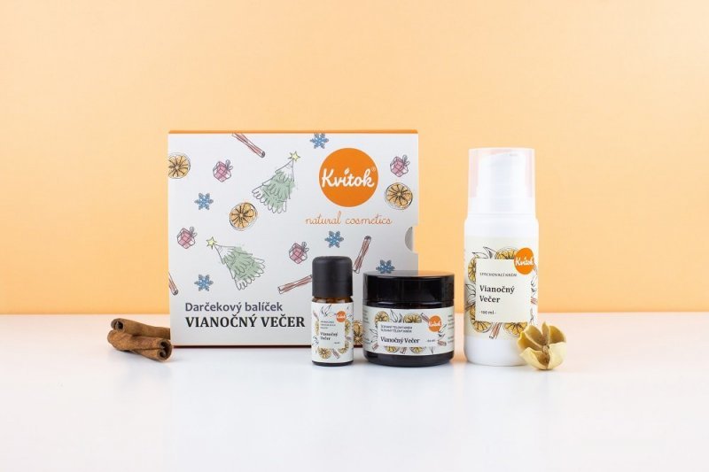 Kvitok Dárkový kosmetický balíček Vánoční večer - sprcháč, tělový krém a aroma směs