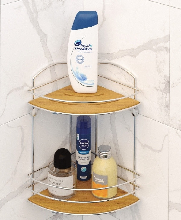 Polička roh chrom dřevo 2 patra 31x20x20cm