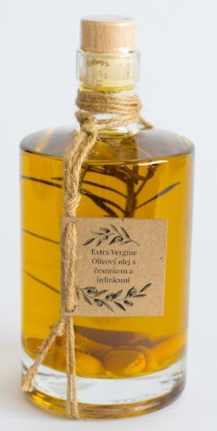 Extra Vergine olivový olej s česnekem a bylinkami, objem 500 ml. V luxusním balení z ekologického skla a použití přírodních materiálů. Pokud chcete někoho, kdo má rád kvalitní olivový olej potěšit, tak o to větší radost mu uděláte tímto, protože nejen že výborně dochutí pokrm, ale i krásně...