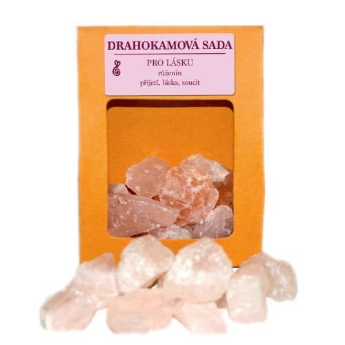 Drahokamová sada – Pro lásku je základní set kamenů pro přípravu drahokamové vody.Drahokamová sada obsahuje: Růženín Růženín je kámen nesobecké lásky, probouzí v nás cit přátelství a mírnost. Nesmělým milencům pomáhá projevit své utajované pocity. Učí nás větší trpělivosti při komunikaci s lidmi...