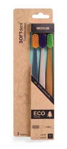 SOFTdent Eco Medium, je kartáček na zuby v nejběžnější variantě pro běžné čištění chrupu po ránu i z večera. Medium štětiny na jeho hlavičce jsou mimořádně vhodné pro jedince se zdravými zuby bez zvýšené citlivosti. Nadchne vás tvar rukojeti i hlavičky, který stojí za tím, že je umožněn dokonalý přístup k ploše každého zubu.