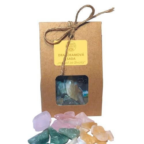 Drahokamová sada - Radost ze života obsahuje:CitrínAventurínRůženínProstá radost bytí, tady a teď. Citrín představuje radost ze života, chuť a vůli žít, růženín nás vede ke schopnosti milovat sebe i druhé, aventurín představuje uvolnění a nadšení.Jedná se o tromlované kameny vhodné pro úpravu...