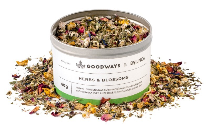 Bylinkový čaj Herbs & Blossoms je namíchán z pečlivě vybraných bylinek a květů na jižní Moravě těmi pravými odborníky a s láskou doveden k dokonalosti. Díky barevné škále květů, které jsme pro vás vybrali, chutná již na první pohled! Máta s meduňkou se skvěle doplňují a zajišťují lahodnou chuť i vůni, máta osvěží a meduňka navodí pocit klidu a pohody.