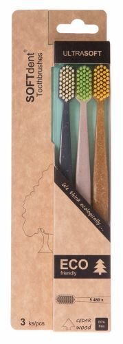 SOFTdent Eco Ultra Soft představuje kartáček s klasickým tvarem hlavy, který je vhodný pro běžné čištění celého chrupu. Díky skutečně velmi jemným Ultra soft vláknům je tento kus vhodný pro lidi s větší citlivostí zubů a dásní a v těchto případech je důležité věnovat čištění dostatek času....