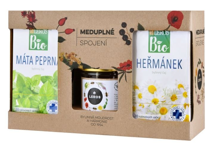 Dárkové balení obsahuje 2 druhy bylinných čajů spolu se skleničkou květového medu k doslazení.Bio Máta peprná: přispívá k normální funkci dýchacího systému, trávicí soustavy a střev. Podporuje přirozenou obranyschopnost a přispívá k relaxaci. Čaj z máty peprné příjemně chutná po mentolu.Bio...