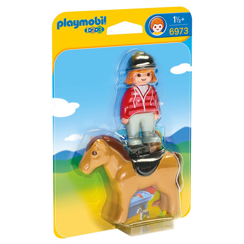 Jezdkyně oblečena do jezdeckého oblečku s jezdeckými botami na nohou čeká, až ji děti vezmou na projížďku na jejím hnědém koníkovi.Playmobil zaujme svou propracovaností a barevností. Díky fantazii a všestrannosti pomáhá dětem v jejich rozvoji. Vhodné pro děti od 18 měsíců.