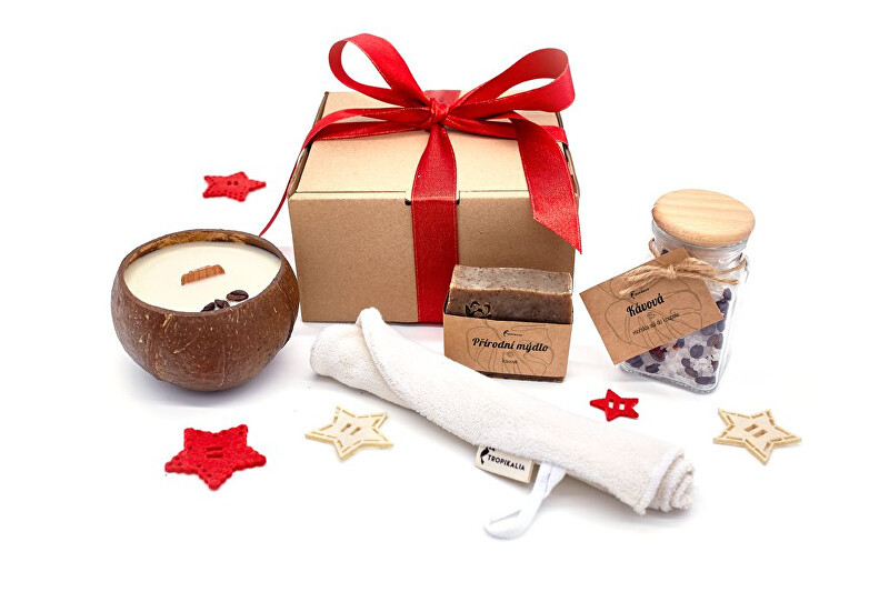 Tento vánoční balíček nadchne nejen každého MILOVNÍKA KÁVY.Balíček obsahuje:Přírodní sójovou svíčku v kokosu s vůní kávy mocha (350 ml)100% přírodní mýdlo na tělo s vůní kávy (90 g)Heboučkou žínku na tělo z biobavlny Sůl do koupele se zrnky kávy (150 g)Vánoční balení: recyklovatelnou krabičku s...
