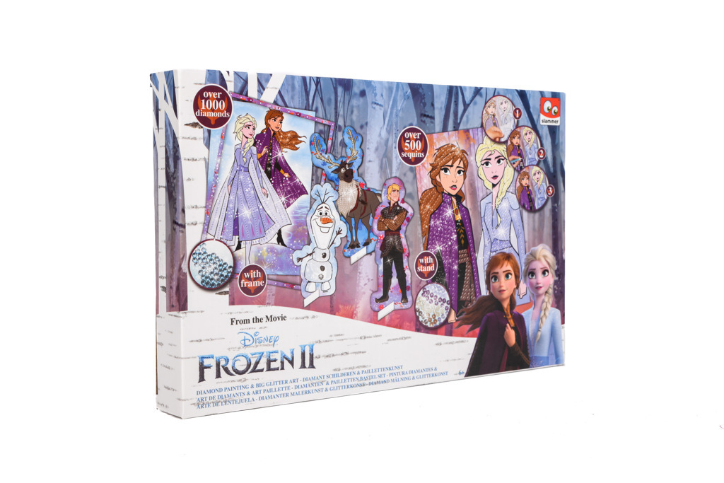 Dárková sada dvou obrázků Ledové království. Výrobek obsahuje pět obrázků obřázků, 6 pytlíčků s flitry, 6 pytlíčků s třptivými kamínky, aplikátor, rámeček, misku na kamínky, háčky. prečítať celé