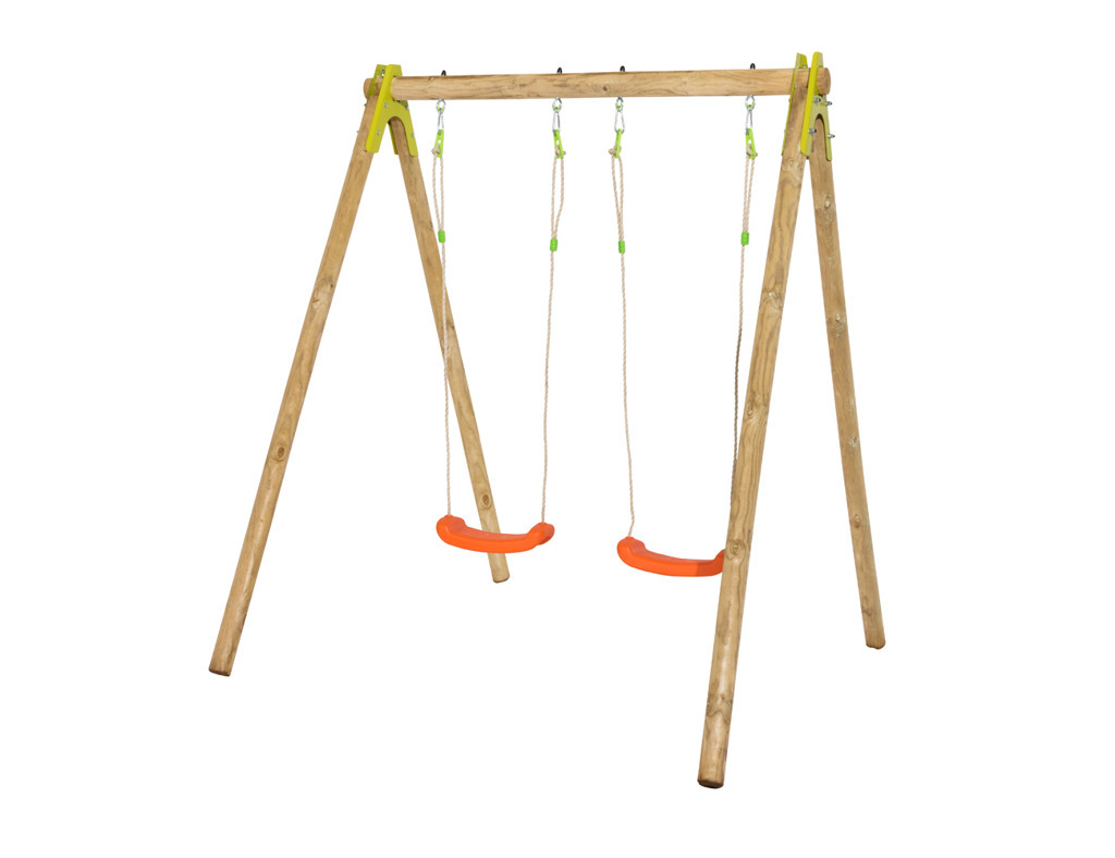CHERRY – celoDŘEVĚNÉ sestavy 190 cm vysoké, materiál harmonizuje se okolní zahradou.Nasta­vitelná výška plastového sedátka – 2 ks, vyrobené vstřikovací metodou, houpačka zavěšena na pevném závěsném oku. Spoje jsou kovové ! prečítať celé