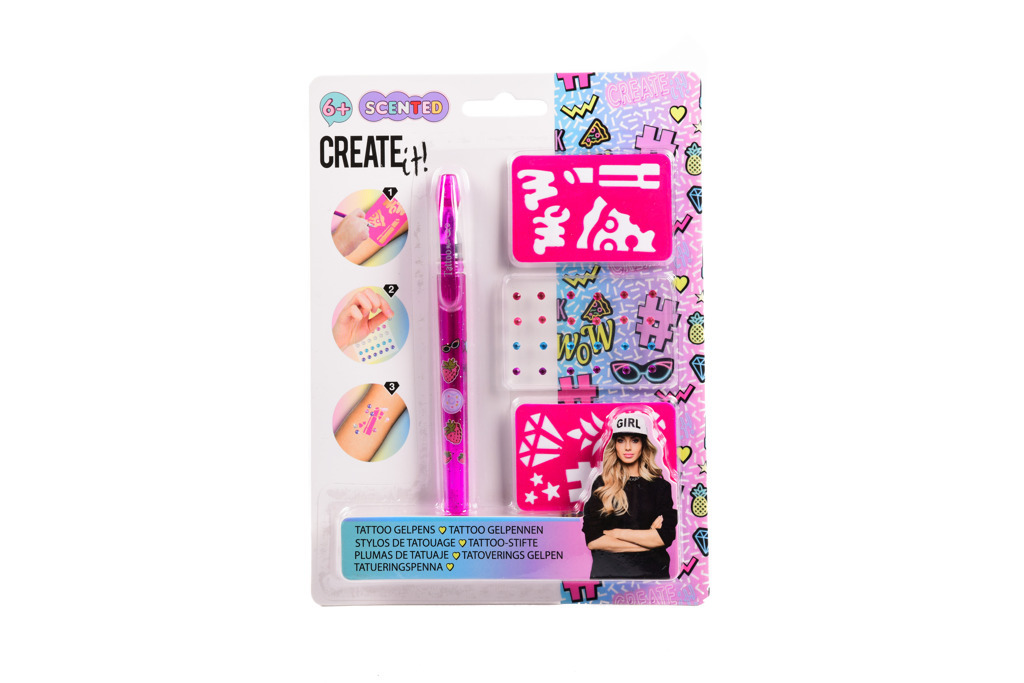 Tetovací sada ve třech barvách – růžové, modré a fialové. Sada obsahuje voňavé tetovací pero, šablony a nalepovací kamínky na ozdobu tetování. Dermatologicky testováno v EU, zdravotně nezávadné. prečítať celé