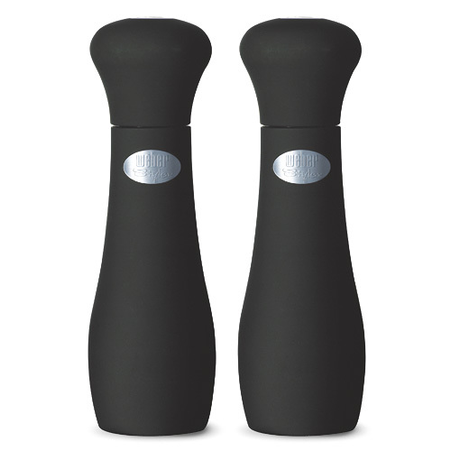 Tato černá sada mlýnků na pepř a sůl, je novým elegantním a designově vytříbeným počinem známého designéra Troelse Seidenfadena. Mlýnky speciálně vyrobené pro značku Weber disponují keramickým mlecím mechanismem Crush Grind a silikonovým povrchem. Vysoká kvalita je zde tedy zaručena. Jsou snadno omyvatelné a jejich povrch je protiskluzový.Výška mlýnků: 19 cm.