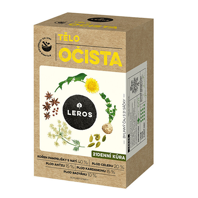 Tělo očista 21 x 1,4 g je 21denní osvěžující kúra pro přirozenou očistu těla, obsahuje pampelišku, která podporuje přirozenou funkci močových cest a trávení. Přispívá k normální činnosti žaludku a jater. Upozornění:Nepřekračujte doporučené denní dávkování. Při chronických onemocněních ledvin,...