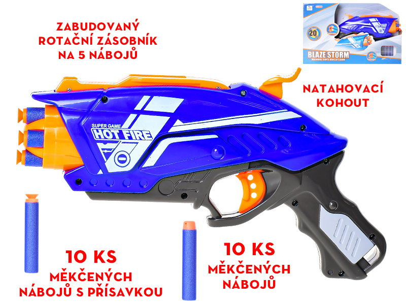 Pistole 28cm s rotačním zásobníkem pěnových nábojů 20ks v krabičce