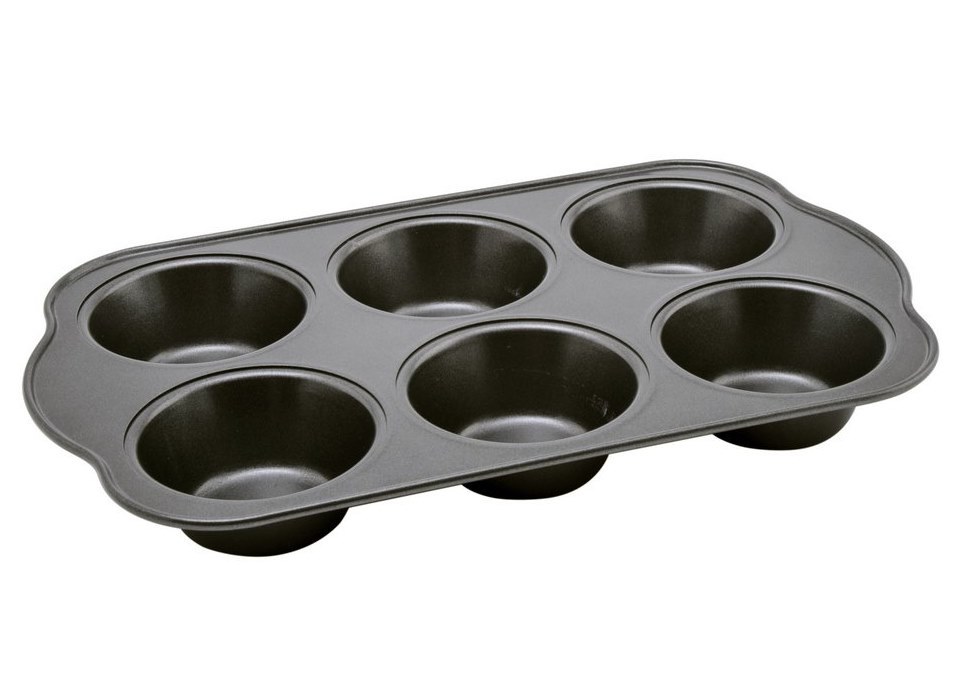 forma na muffiny nebo vdolečky rozměry 28,5 x 18 x 3,2 cm, horní průměr muffinu je 7 cm, síla plechu 0,5 mm uhlíková ocel s keramickým nepřilnavým povrchem forma na 6 ks není vhodná do myčky nádobí EAN 5901468248056 prečítať celé
