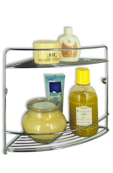 kvalitní rohová dvoupatrová koupelnová police vyrobená z chromovaného drátu rozměry 28 x 28 x 29 cm včetně montážního materiálu (vruty a hmoždinky) dekorace nejsou součástí EAN 8001579915353 prečítať celé