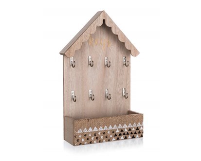 Vešiak na kľúče drevo 8 háčikov HOUSE