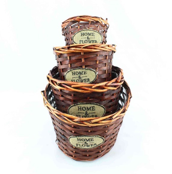 Obal květináče proutěný kulatý HOME sada 4ks hnědá