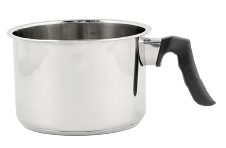 kvalitní nerezový mlékovar s tvarovanou plastovou rukojetí a sendvičovým dnem, které zamezuje připalování vhodná na všechny typy varných desek včetně indukce odměrné rysky uvnitř hrnce užitný objem 750 ml, průměr 12 cm EAN 5908239663896 prečítať celé