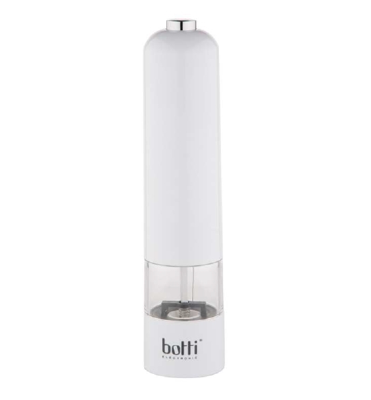 elektrický mlýnek na koření nebo sůl má plastové tělo a akrylový zásobník LED světlo při stisknutí mletí vnitřek mlýnku tvoří keramická mlecí mechanika, zdroj napájení 4xAA (tužkové) baterie (nejsou součástí výrobku) EAN 5902719511745 prečítať celé