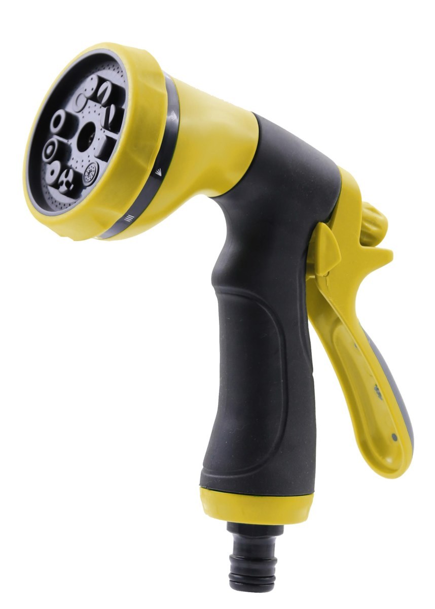 postřikovací pistole připojitelná k hadici rychlospojkou multifunkční hlava má 8 typů rozstřiku, které změníte jednoduchým pootočením hlavice ergonomická rukojeť s aretací EAN 5901292684891 prečítať celé