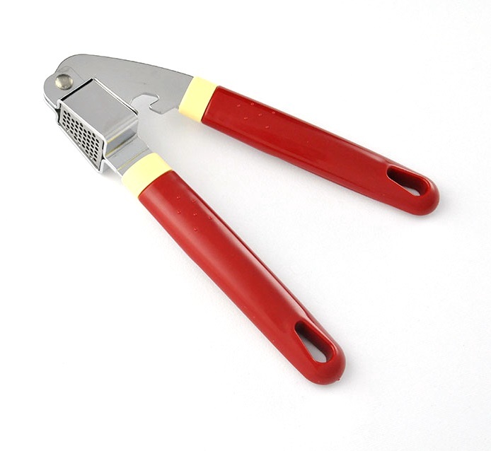 kvalitní lis na česnek s nerezovým tělem a plastovými rukojeťmi, vhodný na profesionální i domácí používání italský výrobce, šedá rukojeť EAN 8005498089034 prečítať celé